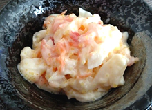 いかとホッキ貝のマヨソースサラダ。お子様からお年寄りまで幅広くご賞味頂けます。
